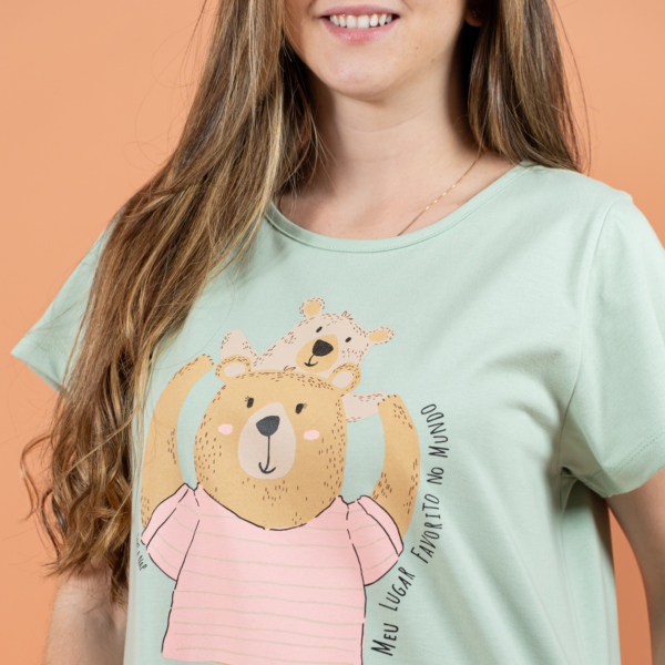 A estampa localizada da mamãe urso com seu filhote, em estilo flores vintage com um toque moderninho, faz parte da coleção especial Família Combinando — perfeita para celebrar o carinho entre pais e filhos com muito estilo. Um diferencial de cores valoriza a peça e traz ainda mais charme e versatilidade.