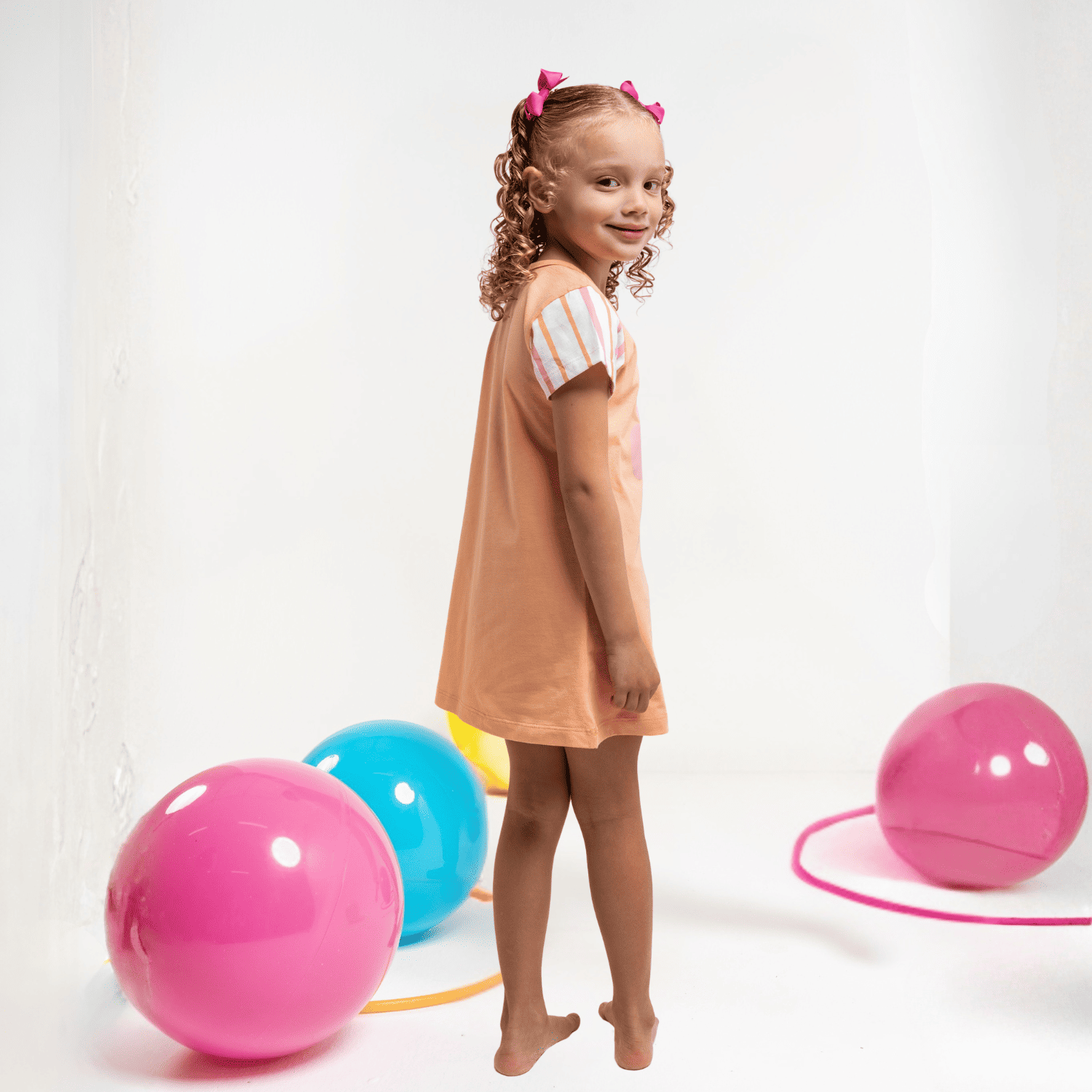 A peça, na cor laranja estampada com uma florzinha sorridente fofíssima, tem as mangas de listrinhas laranja e rosa, que dão um toque a mais de fofura na peça!