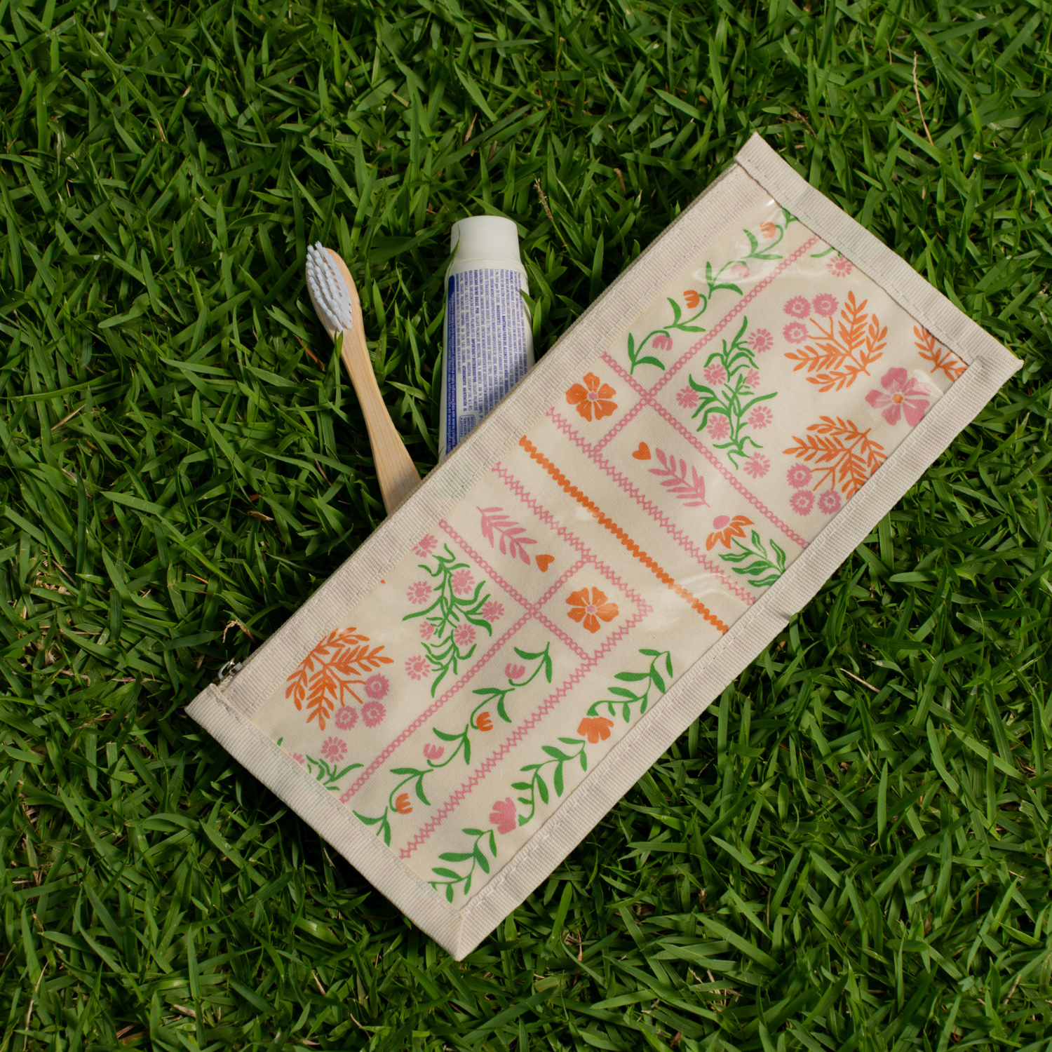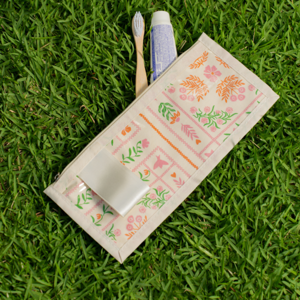 Perfeito para armazenar pequenos itens, como pasta e escova de dentes, o Kit Sorriso, como chamamos carinhosamente o nosso porta escova de dentes, tem o tamanho ideal para ser levado dentro de outra bolsa ou nécessaire maior. Com zíper reforçado, estampa digital minimalista, que transmite leveza e harmonia no estilo folk, em uma paleta de cores cuidadosamente escolhida para refletir a essência da coleção, ele combina estilo e funcionalidade. O detalhe em fita de cetim permite personalizar com o seu nome ou o da pessoa a ser presenteada, tornando a peça ainda mais especial e única!