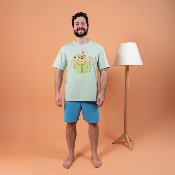 A peça faz parte da coleção especial Família Combinando e traz a estampa exclusiva do papai urso com seu filhote no “tumtum”, simbolizando o carinho e o aconchego da relação entre pais e filhos.