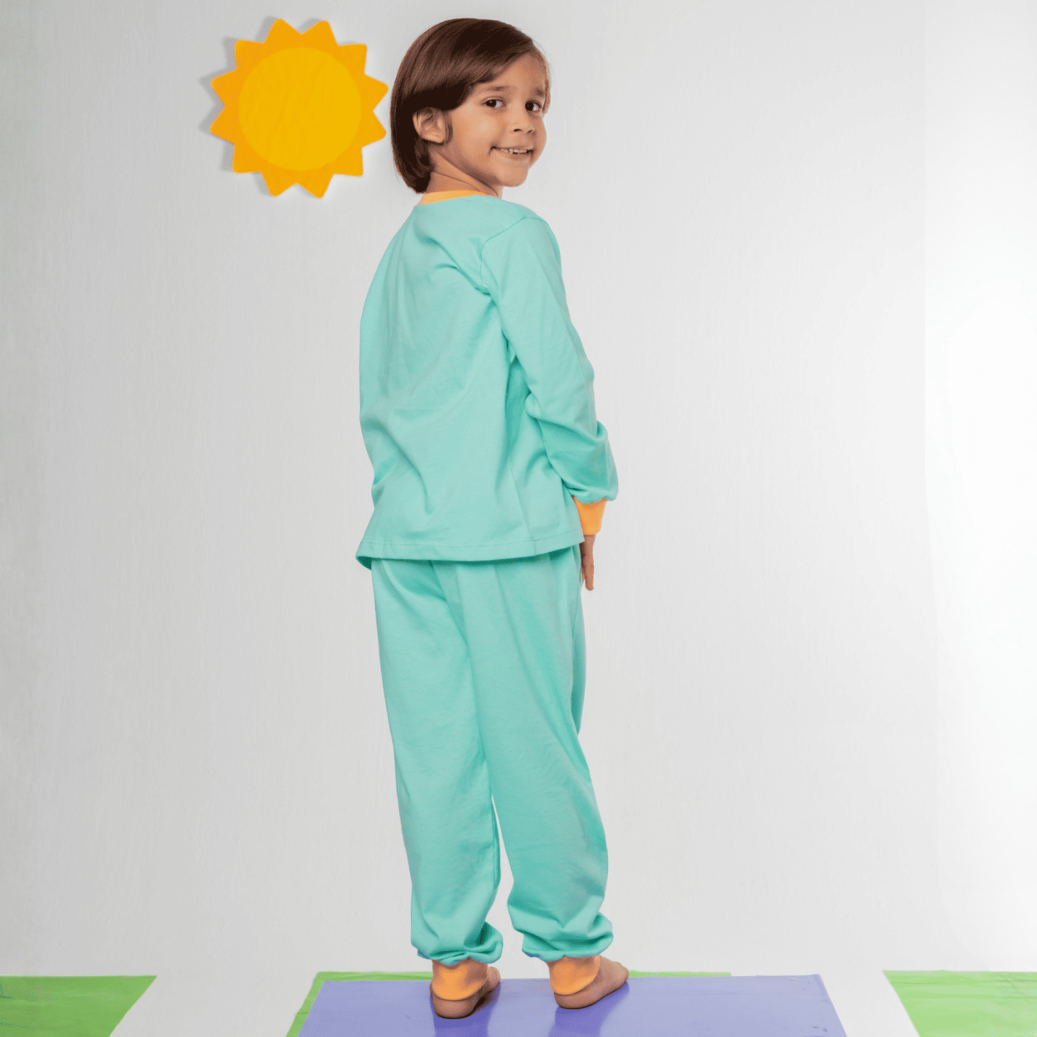 A calça verde água com detalhes coloridos em ribana na barra, tem elástico na cintura garantindo o conforto, para que a criançada possa se mexer à vontade enquanto sonha!