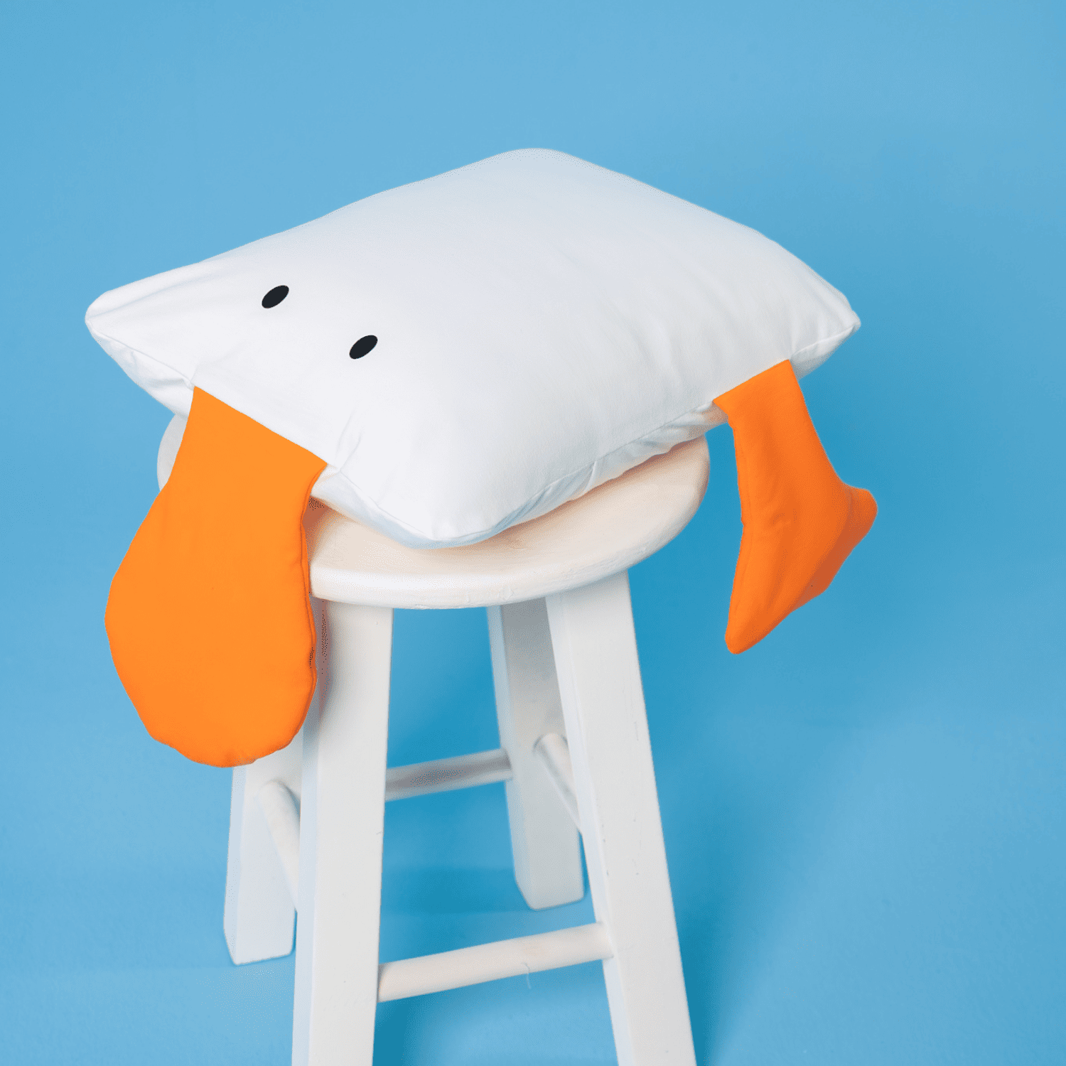 O corpo do pato forma um travesseiro fofinho, enquanto apliques em malha criam o bico, as nadadeiras e o rabinho, dando vida ao personagem e deixando a peça ainda mais lúdica e encantadora!